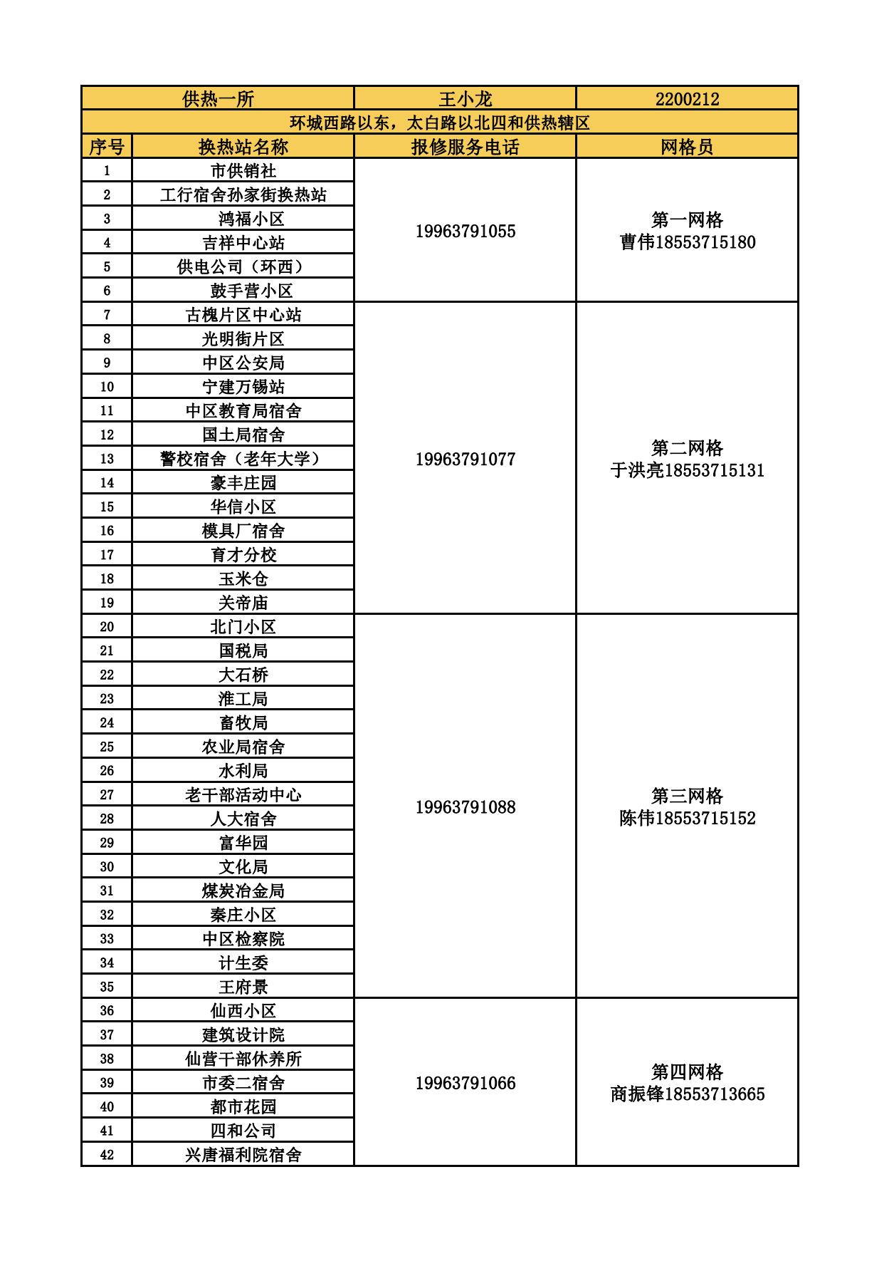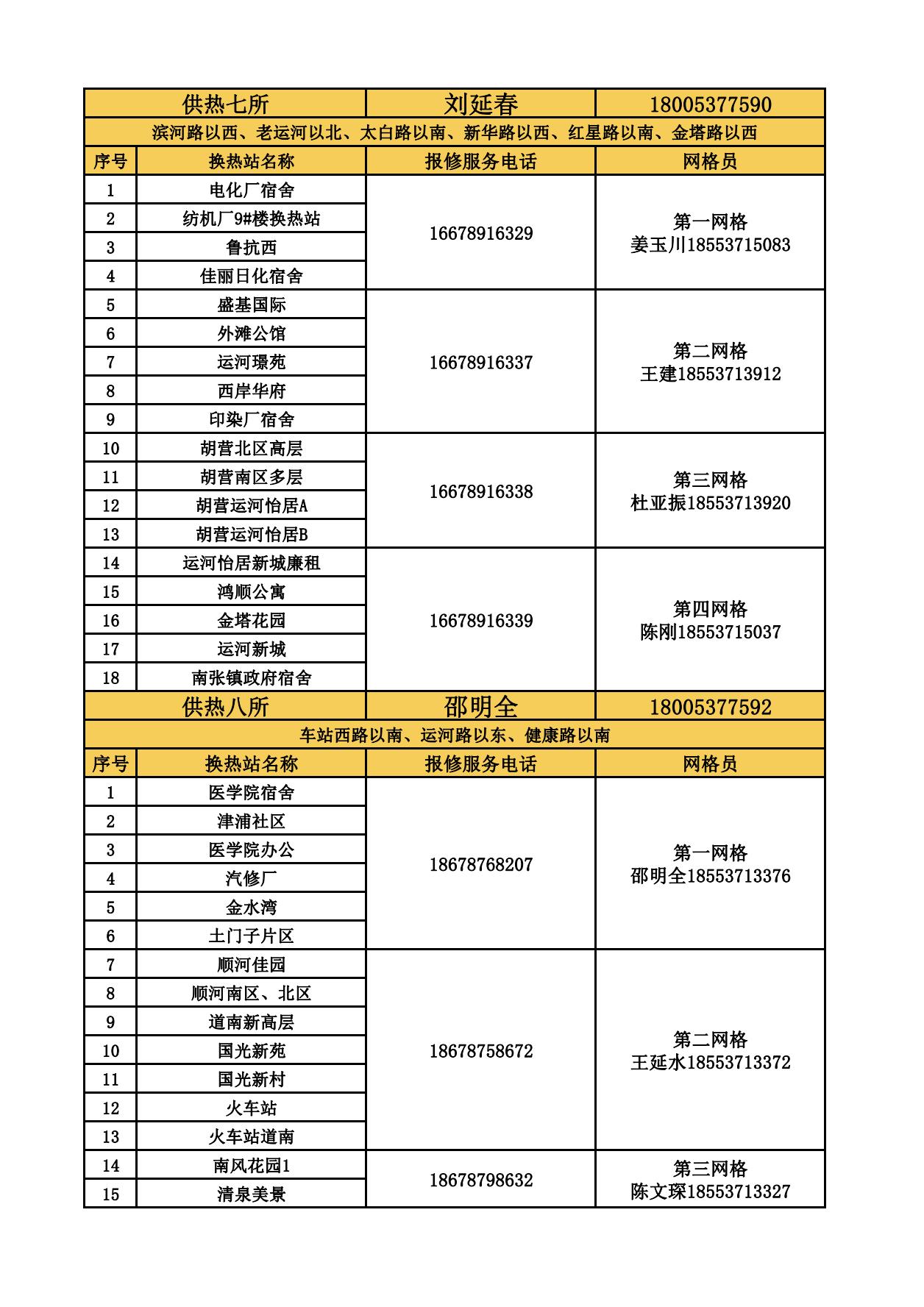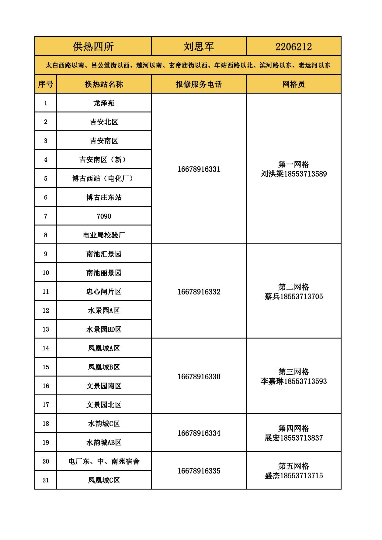 四和供熱公司各供熱服務(wù)所聯(lián)系方式及網(wǎng)格員聯(lián)系方式